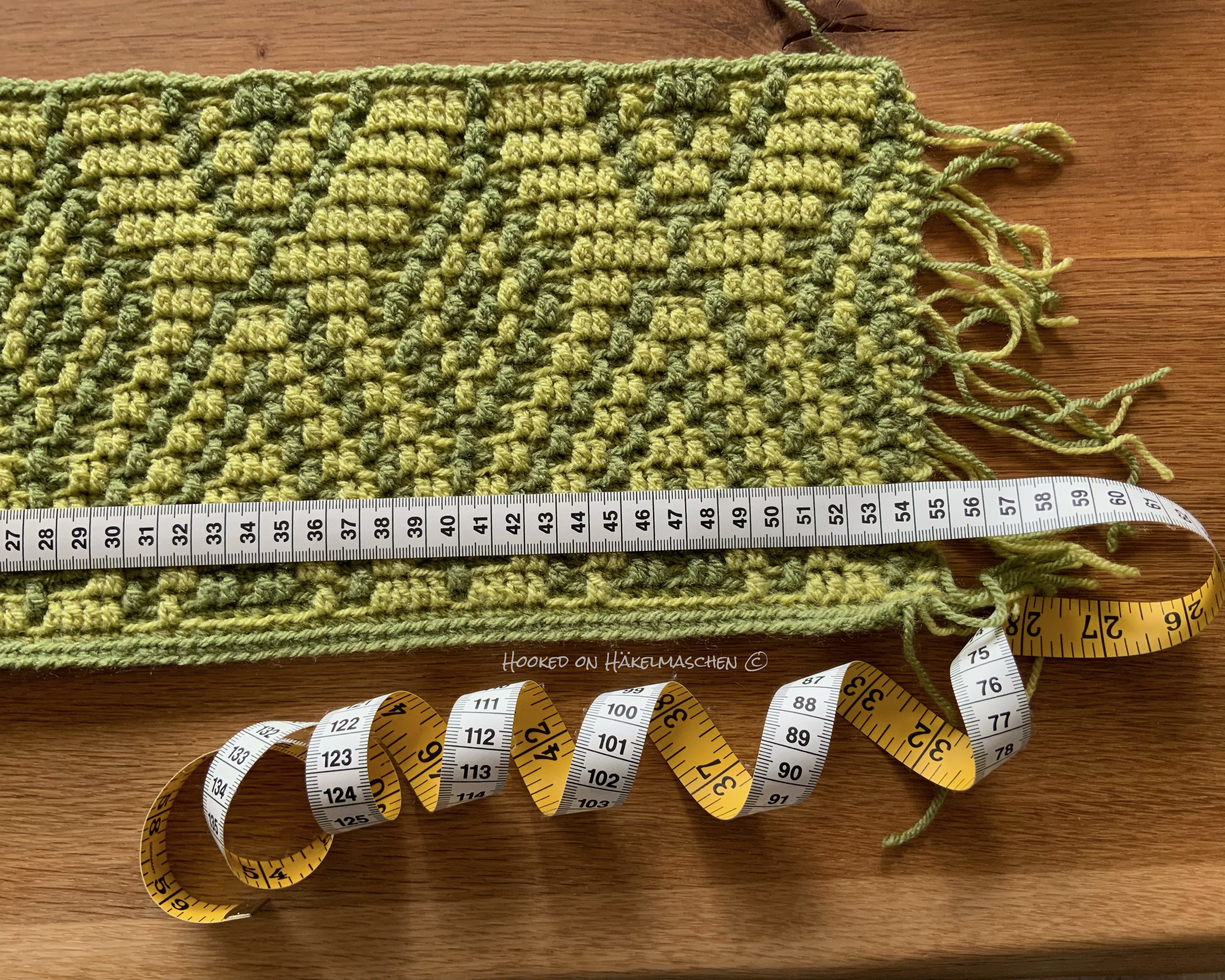 As I joined the test relatively late and didn’t have much time to complete it, I only made a small version: 4 repeats in width and 4 repeats in height, plus the 3 final rows. My finished blanket is about 58 x 80 cm including the border.
