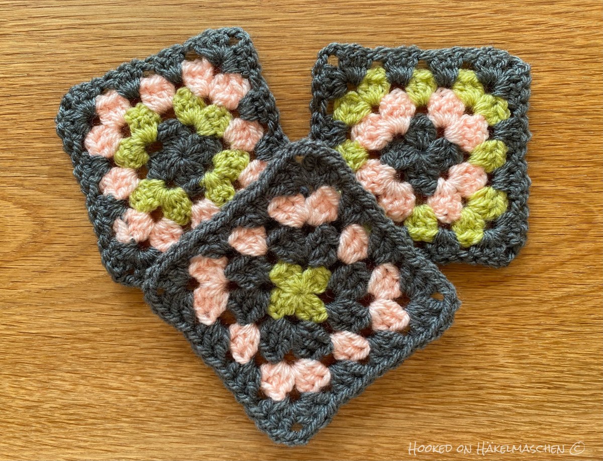 Of course the technique of doing Granny Squares is explained in the pattern. Nevertheless, I was a bit hesitant because the work was turned after each round and I normally don’t like that. I always think that the stitches look much neater from the front side . That’s why I love mosaic crochet or working in the round without turning. So I wondered whether it is really necessary to turn the square after each round and searched the internet.