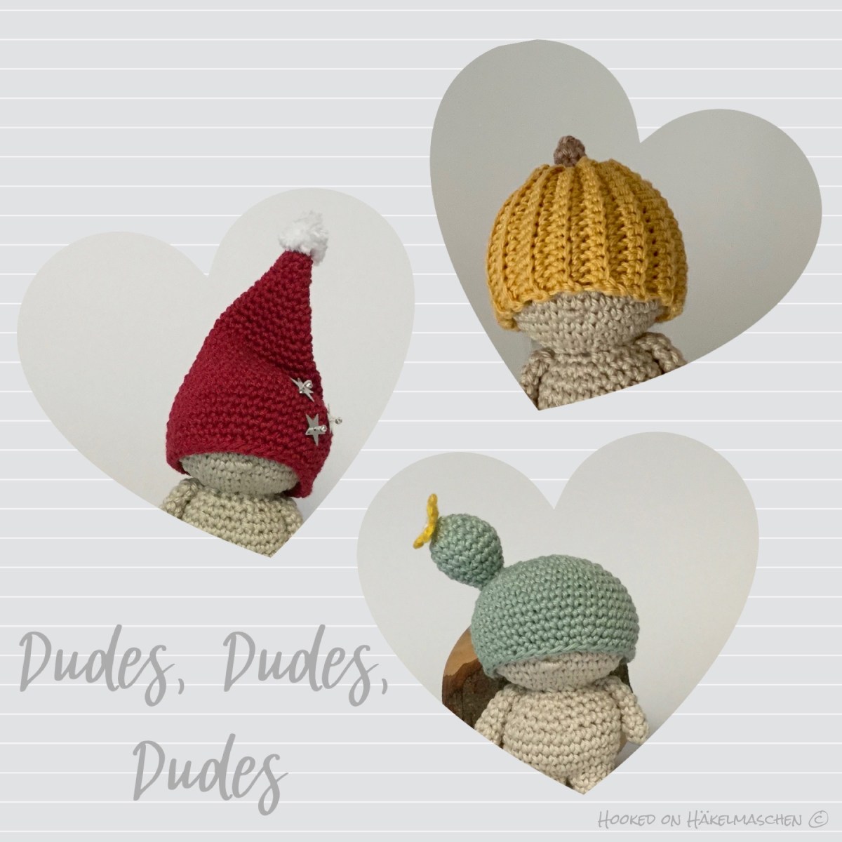 Each pattern has instructions for the Dude and comes with 3 different, themed caps. Some of the caps are really easy to make, for others you will need a bit more concentration, but every step is explained very well.