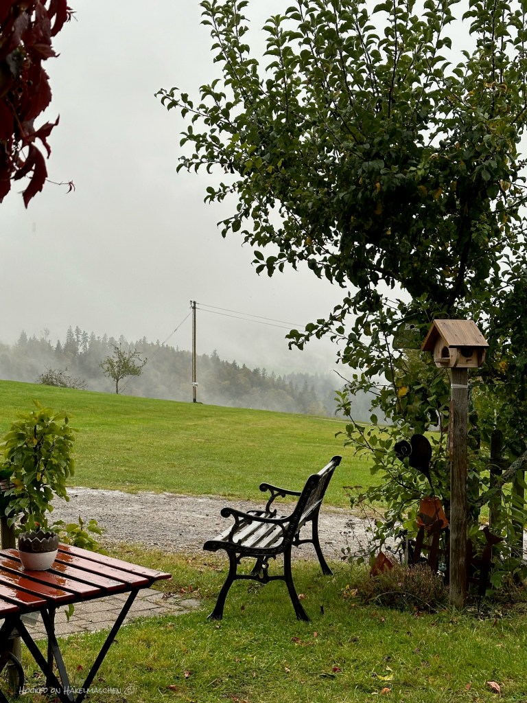 I love this region of Germany! I love the clear and fresh air, the people and especially my holiday place (the one on the picture above with the bench in the rain). Sigh* …