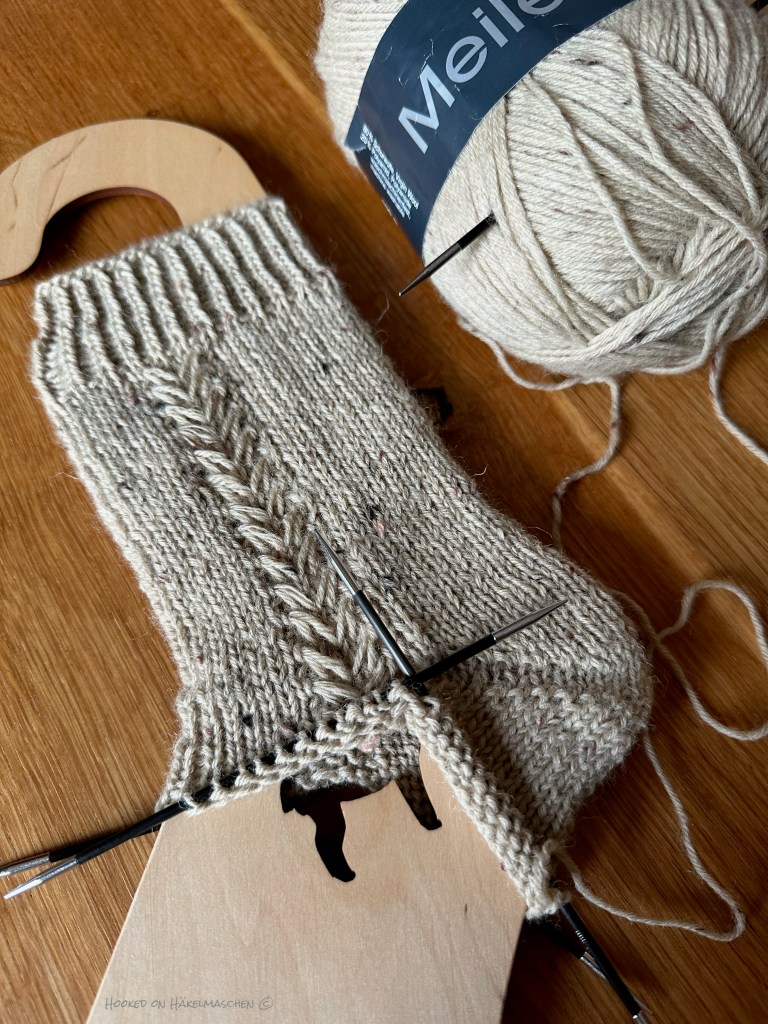 The pattern is called Laid Edges by Kellie Macpherson and is available for free on Ravelry. And wow – it‘s the first time that I work along an English sock pattern. So far it looks like I’ve mastered it (even though I decided to knit a different heel).