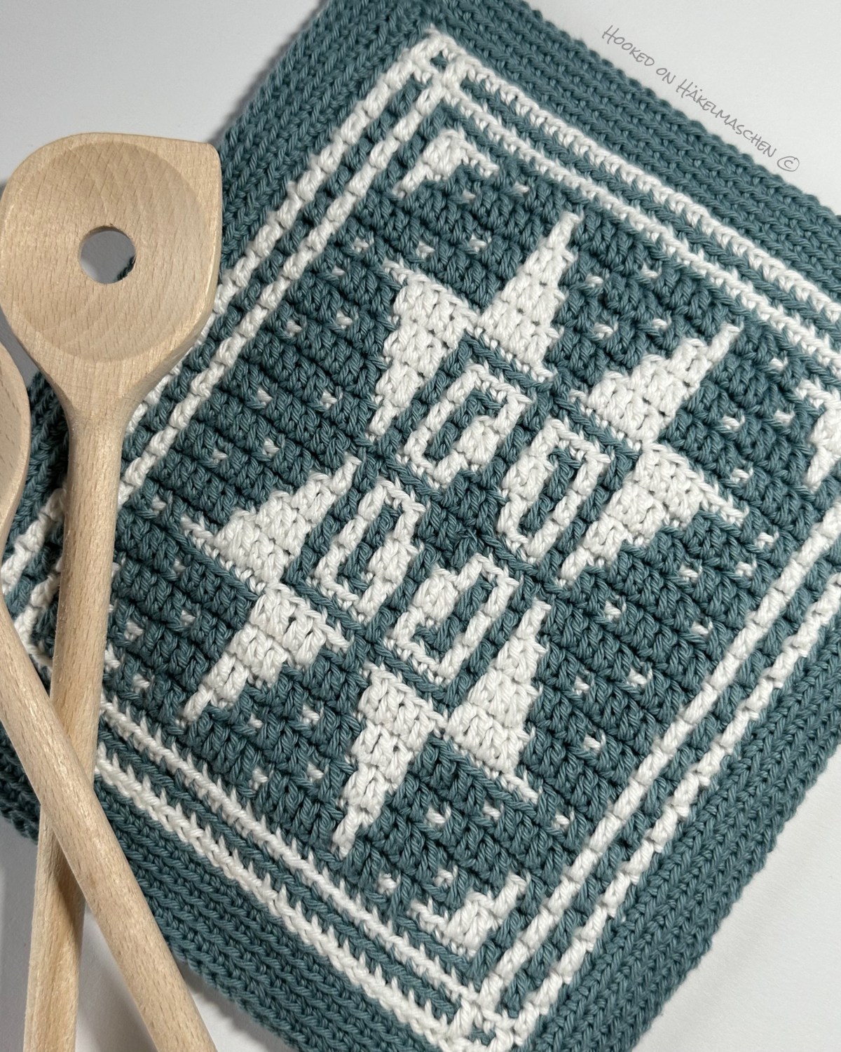 I had the pleasure of testing this pattern and translating it into German. However, I only had little time over Christmas and the turn of the year, so I only made a small square for testing. Originally I wanted to use it as a coaster, but when I finished it I thought it would be a good size for a potholder as well.