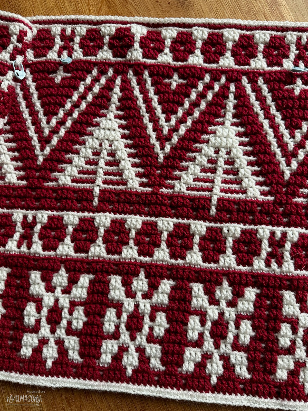 Winter’s Love is another blanket design in Overlay Mosaic. It matches her earlier winter designs – Winter Wonderland, Wintry Forest and Magic Winter – perfectly.