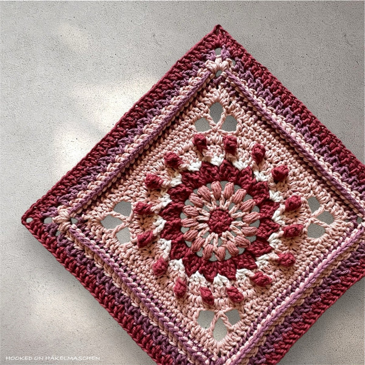 The Around the World Square is another lovely Afghan square with an intermediate skill level. As almost always in Pam’s patterns there are also a few special stitches this time. But everything is well explained and there are plenty of detailed pictures to help. I therefore think that even an ambitious beginner can work the pattern.