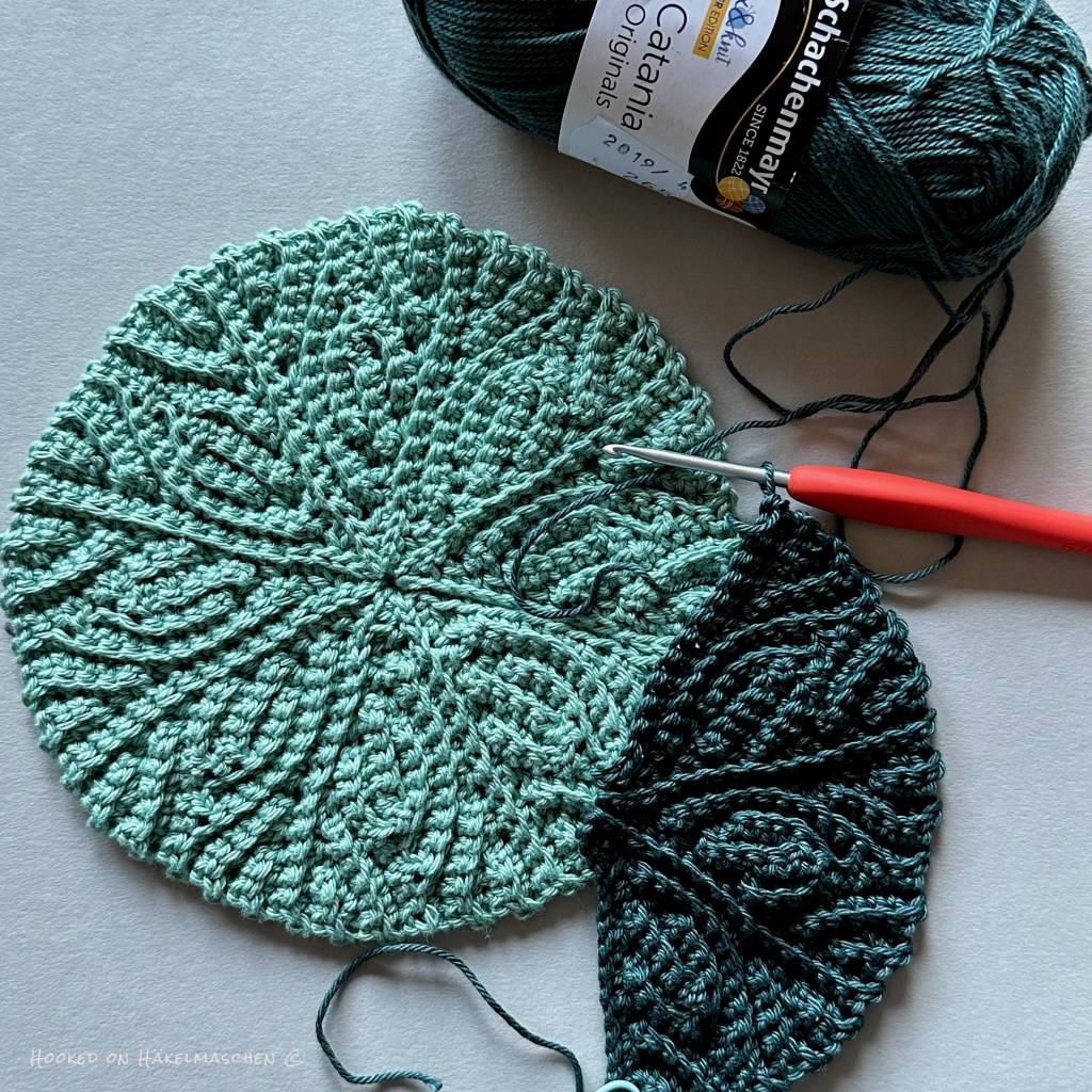 For my wall hangings, I had opted for a relatively inconspicuous joining method in the colour of the squares. In comparison, I now use Pistachio, so it’s more of a contrasting colour. And I opted for the Zig Zag Slip Stitch Join.