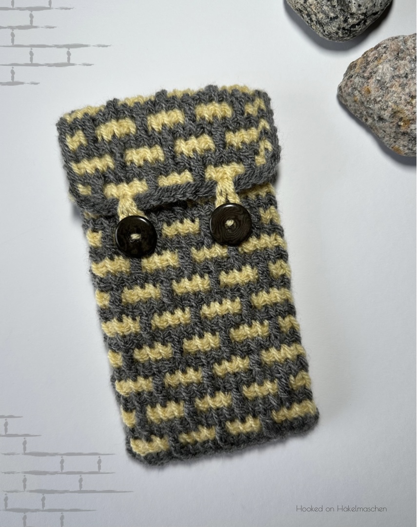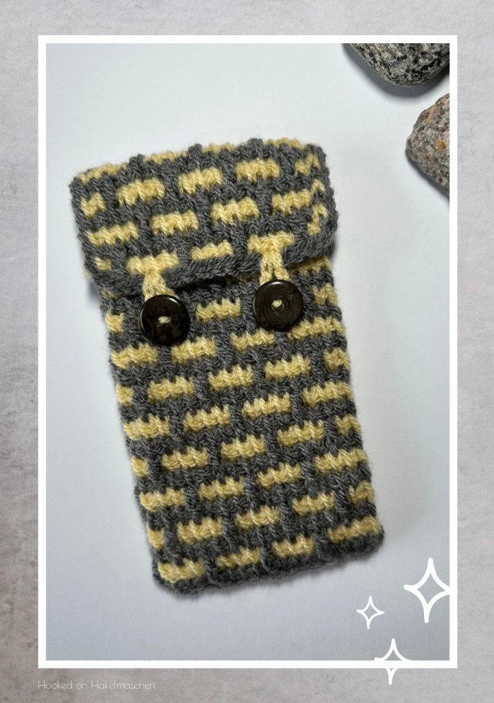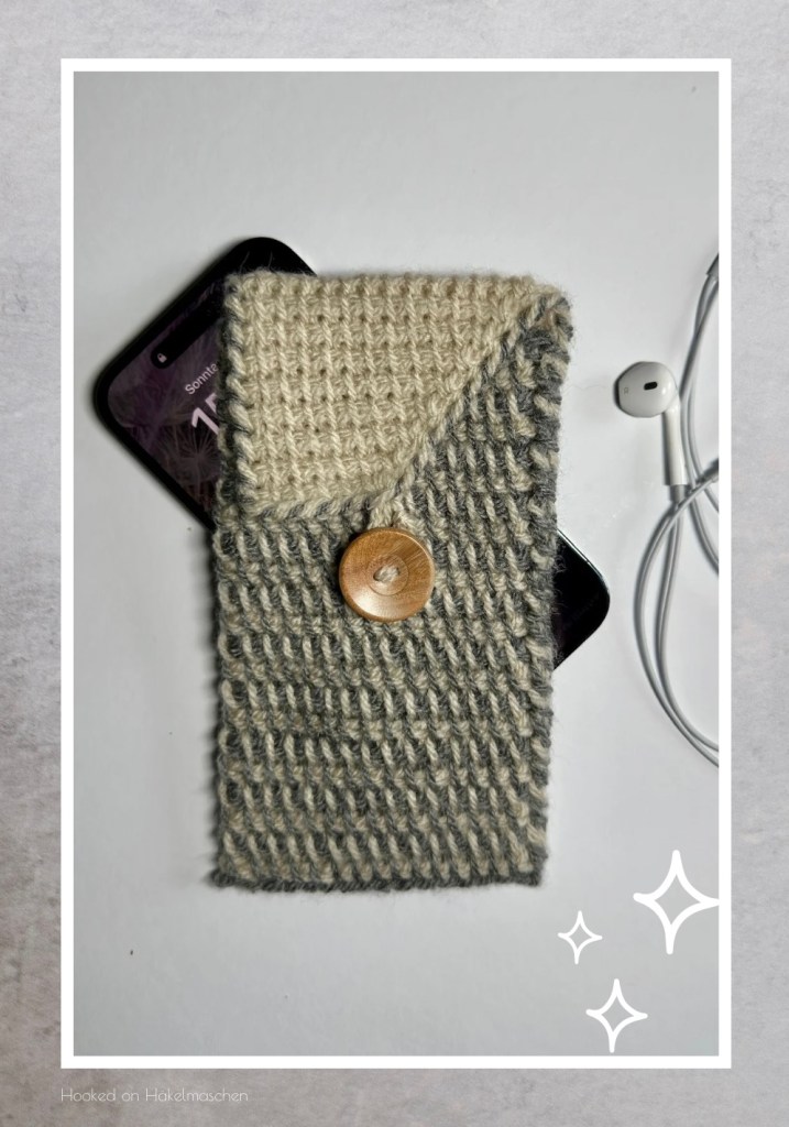 My cozy – made for an iPhone 14 Pro – measures about 9,5 x 16 cm. If you need a different size, the pattern is easy to adjust.