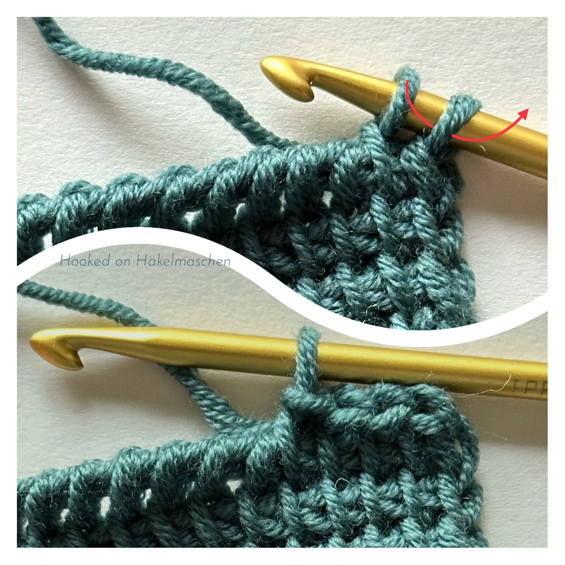 My favourite way is to insert the hook under both loops of the last stitch and pull up a loop. Regardless of which stitches were previously worked. This creates a nice and sturdy edge. But here, too, just try it out and see what you like best.