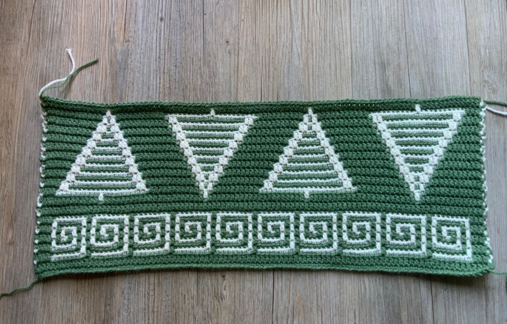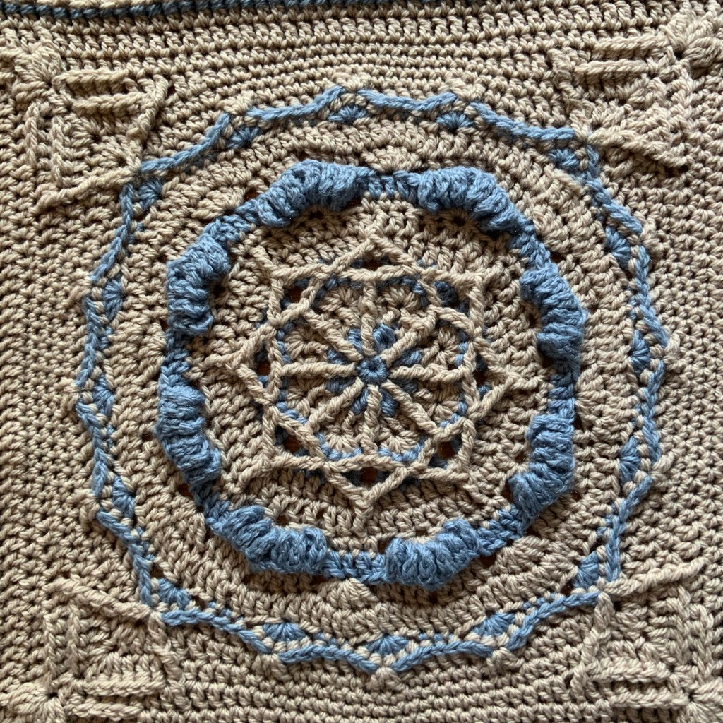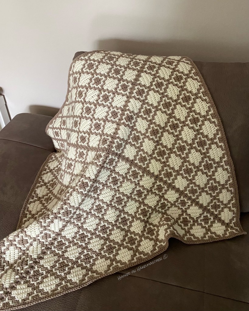 It has charts for 4 different flower motifs and a chart for a separation section. You can combine them just the way you like.