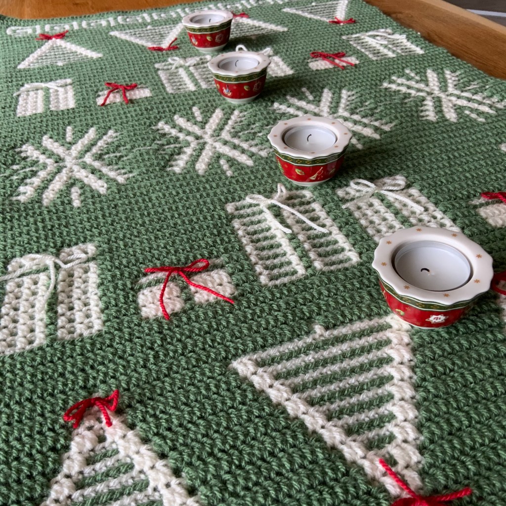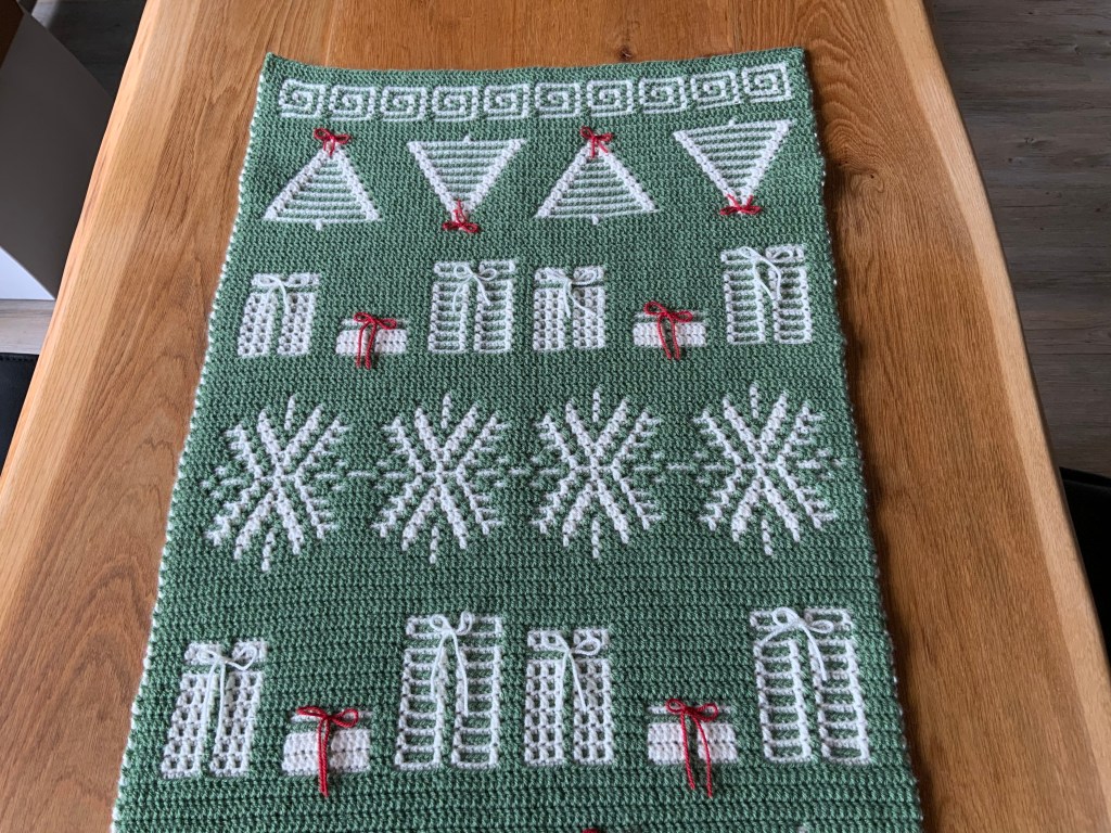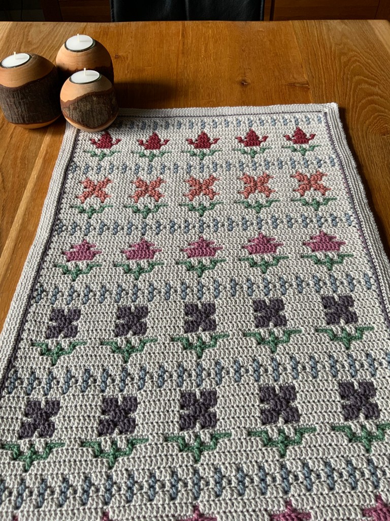 When I took the picture above and saw it lying on my table I decided spontaneously that it won’t be a wallhanging but a table runner for my dining table. And so I continued with flower No. 3 and No. 4.