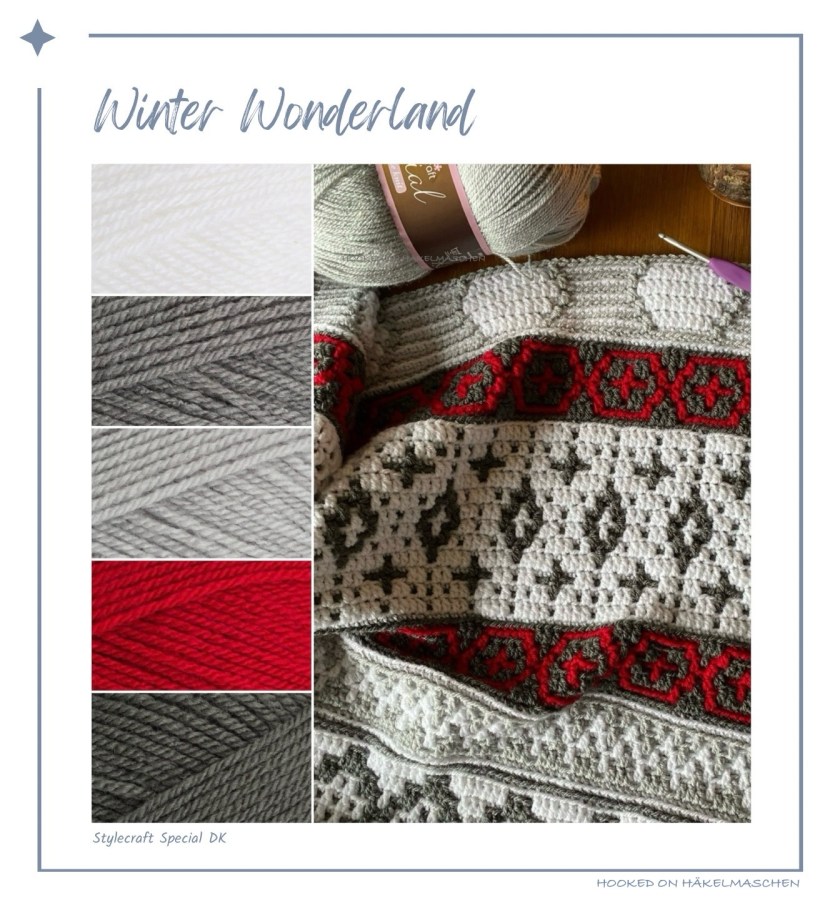 For Winter Wonderland I used Stylecraft Special DK and a 4 mm hook. In total, I used something over 1,000 g of yarn.