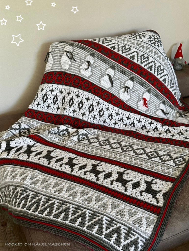 Here in the northern hemisphere autumn is slowly setting in. The days are getting shorter and the evenings cooler. It feels like the perfect time to curl up with a cozy blanket and a hot cup of tea. With this in mind, I would like to show you some of the winter-themed blankets I’ve crocheted over the past few years.